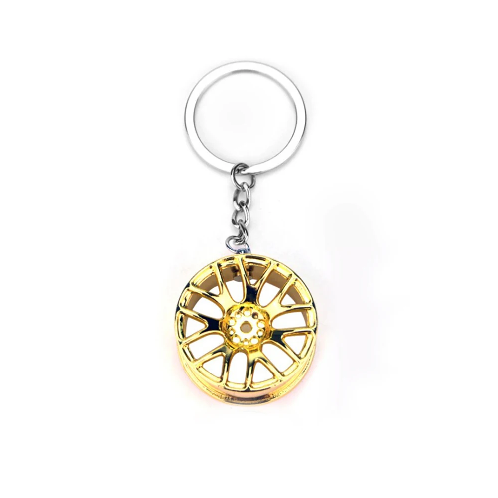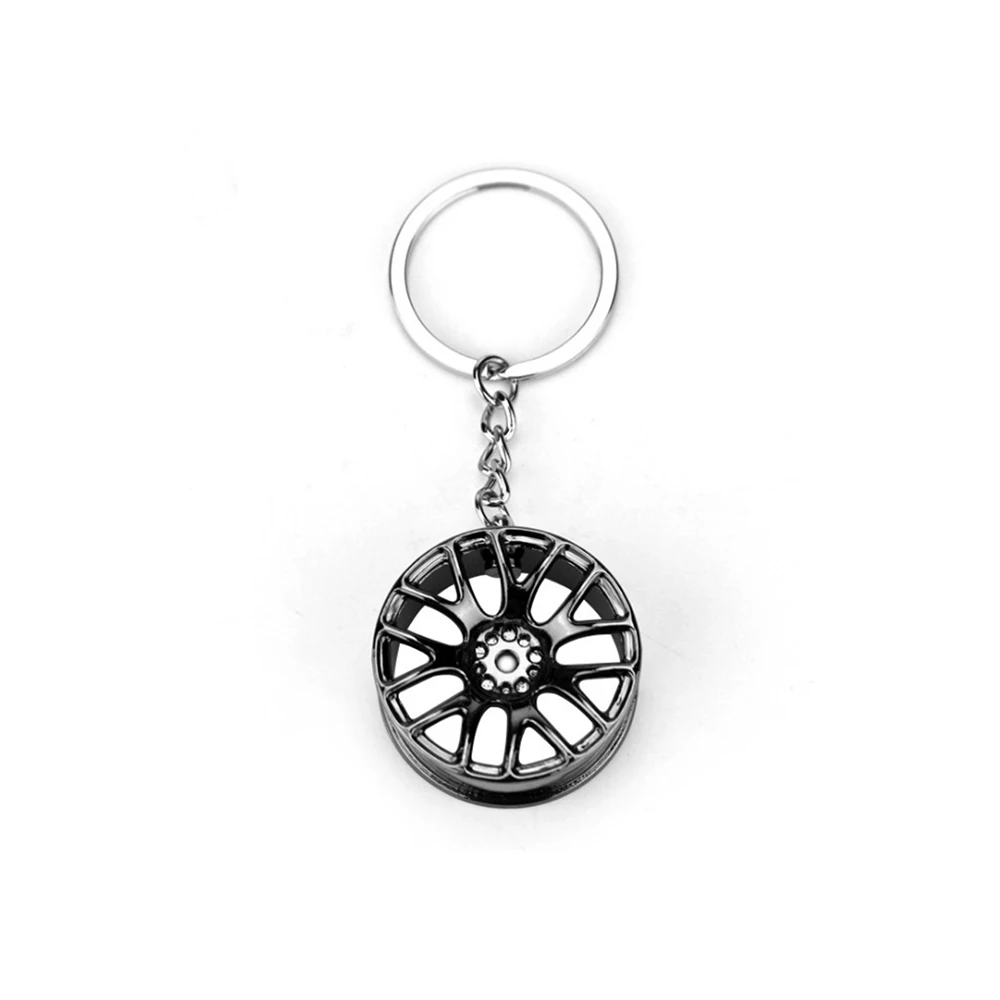 Прямая поставка, модный металлический брелок в виде колесика, стильный автомобильный брелок, золотой черный кулон, креативный подарок, ювелирные изделия, оптовая продажа