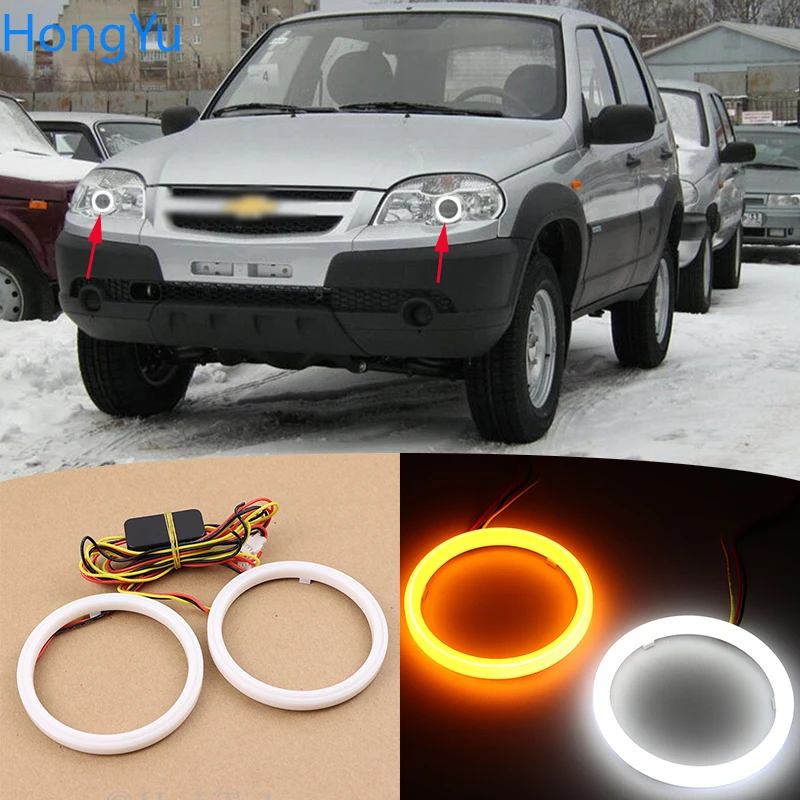 Светодиодный поворотник с хлопковым переключением, белый Янтарный ангельский глаз, кольца с ореолом, DRL, для Chevrolet Niva 2009, 2010, 2011, 2012, 2013