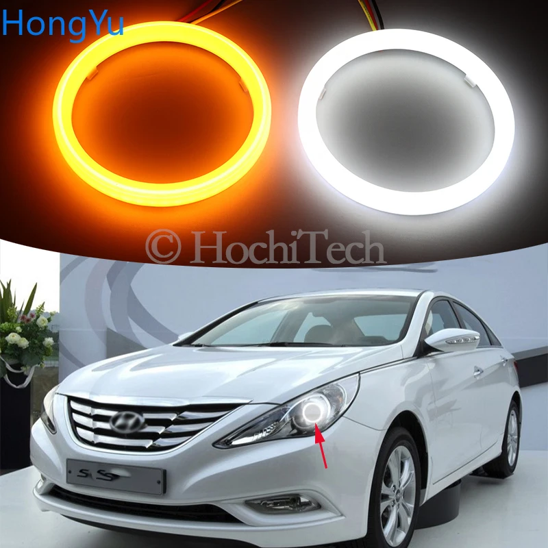 Хлопок горки светодиодный Белый Янтарь ангельские глаза гало кольца DRL сигнал поворота светильник для Hyundai Sonata i45 2009 2010 2011 2012-2014