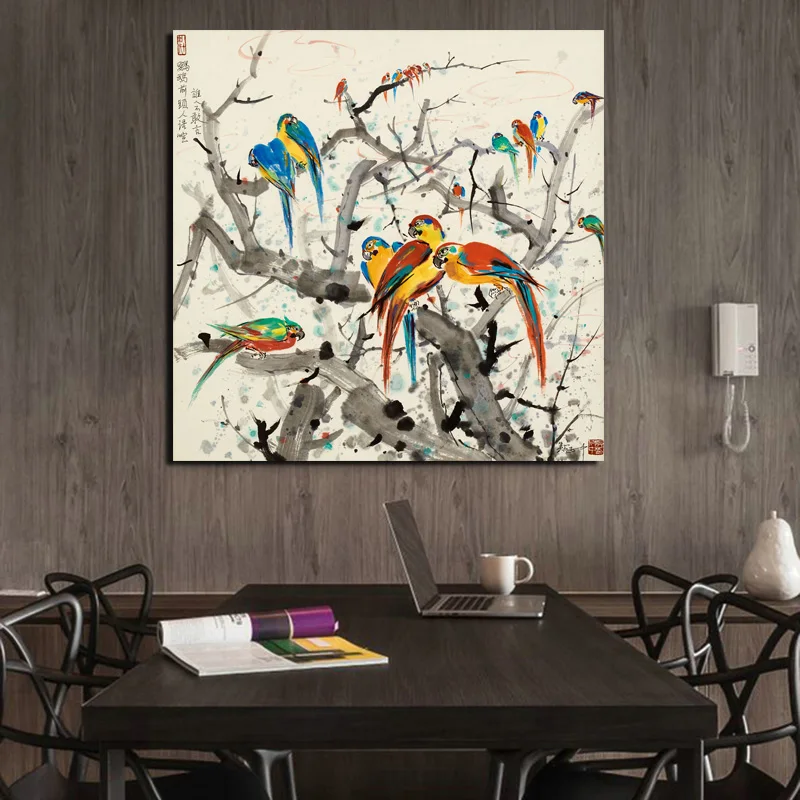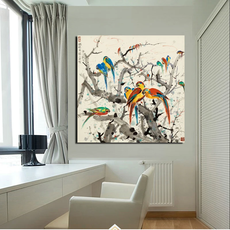 Wu Guanzhong, птица на дереве, холст, живопись, печать, гостиная, украшение для дома, искусство, Современные строительные плакаты, картина
