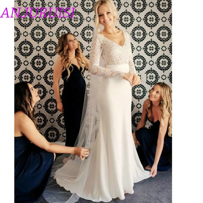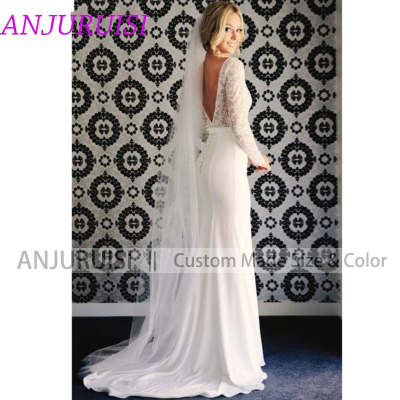 Женское атласное свадебное платье ANJURUISI, кружевное платье с длинными рукавами и открытой спиной в стиле бохо, 2020