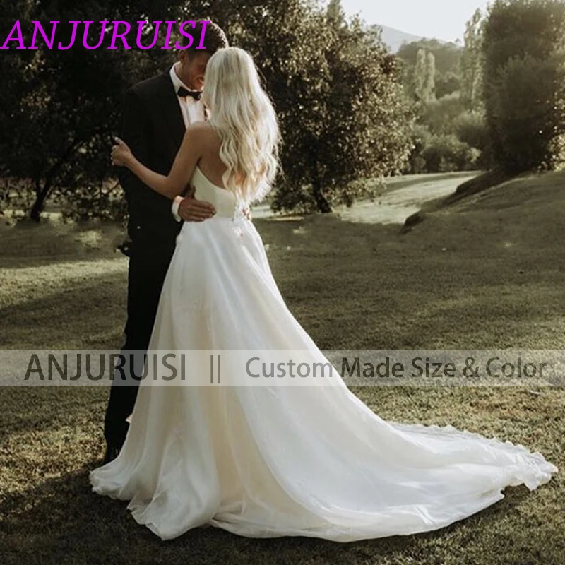 Женское свадебное платье ANJURUISI, белое шифоновое Свадебные платья с глубоким вырезом на спине ТРАПЕЦИЕВИДНОЕ ПЛАТЬЕ невесты в стиле бохо, 2020