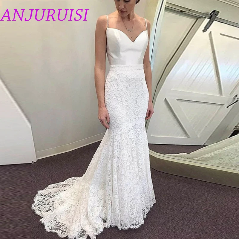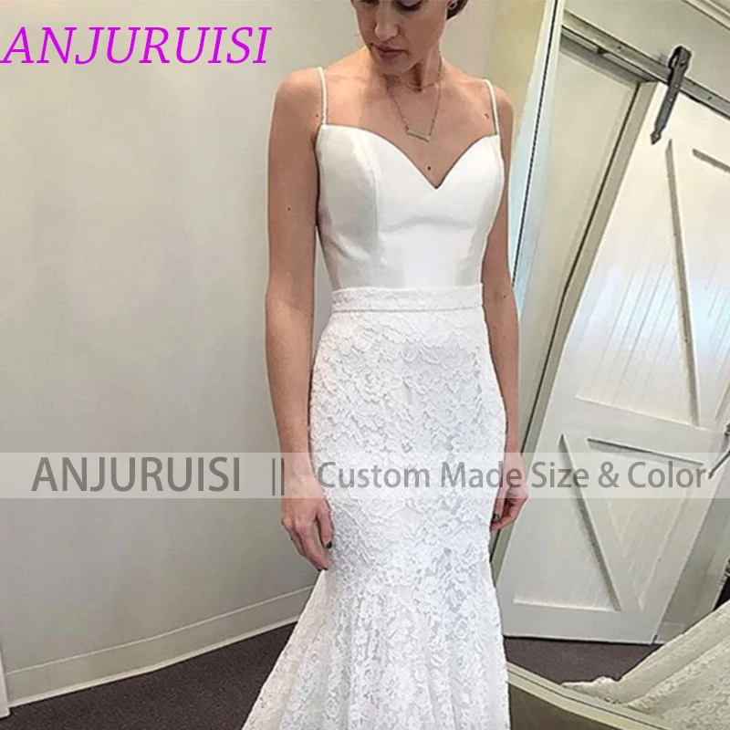 Женское свадебное платье-Русалка ANJURUISI, белое кружевное платье на тонких бретельках, пляжное платье для невесты, лето 2020