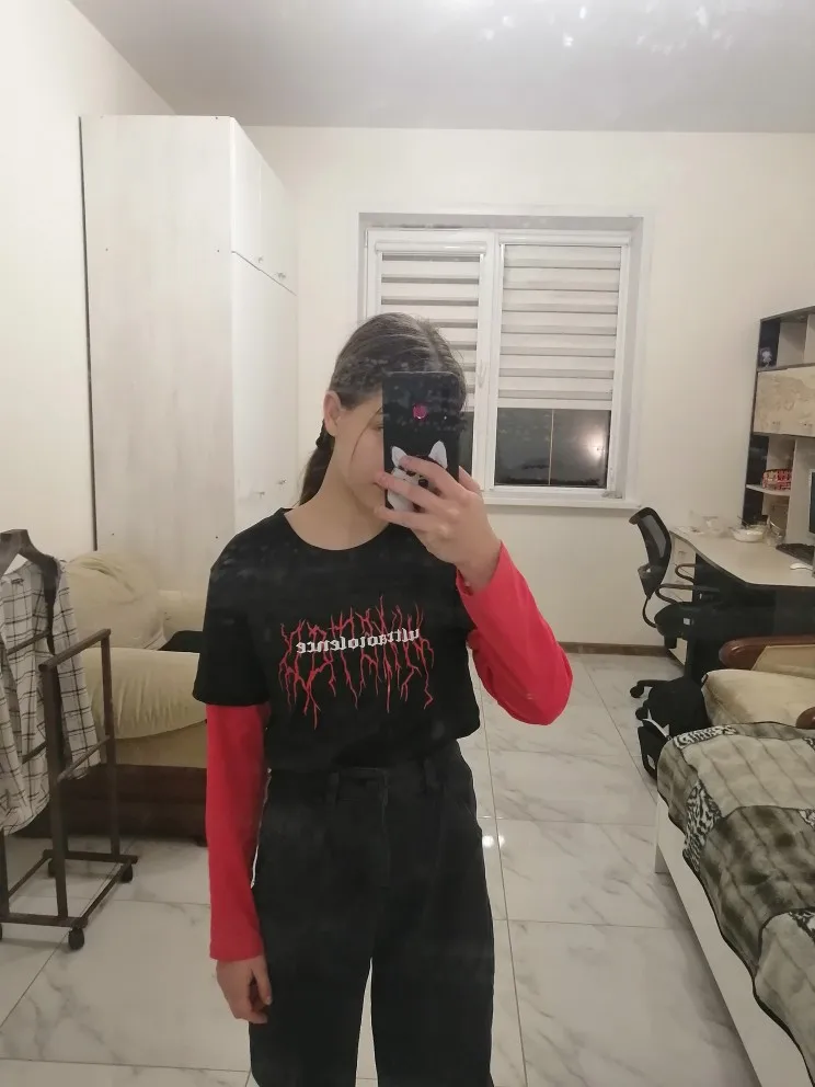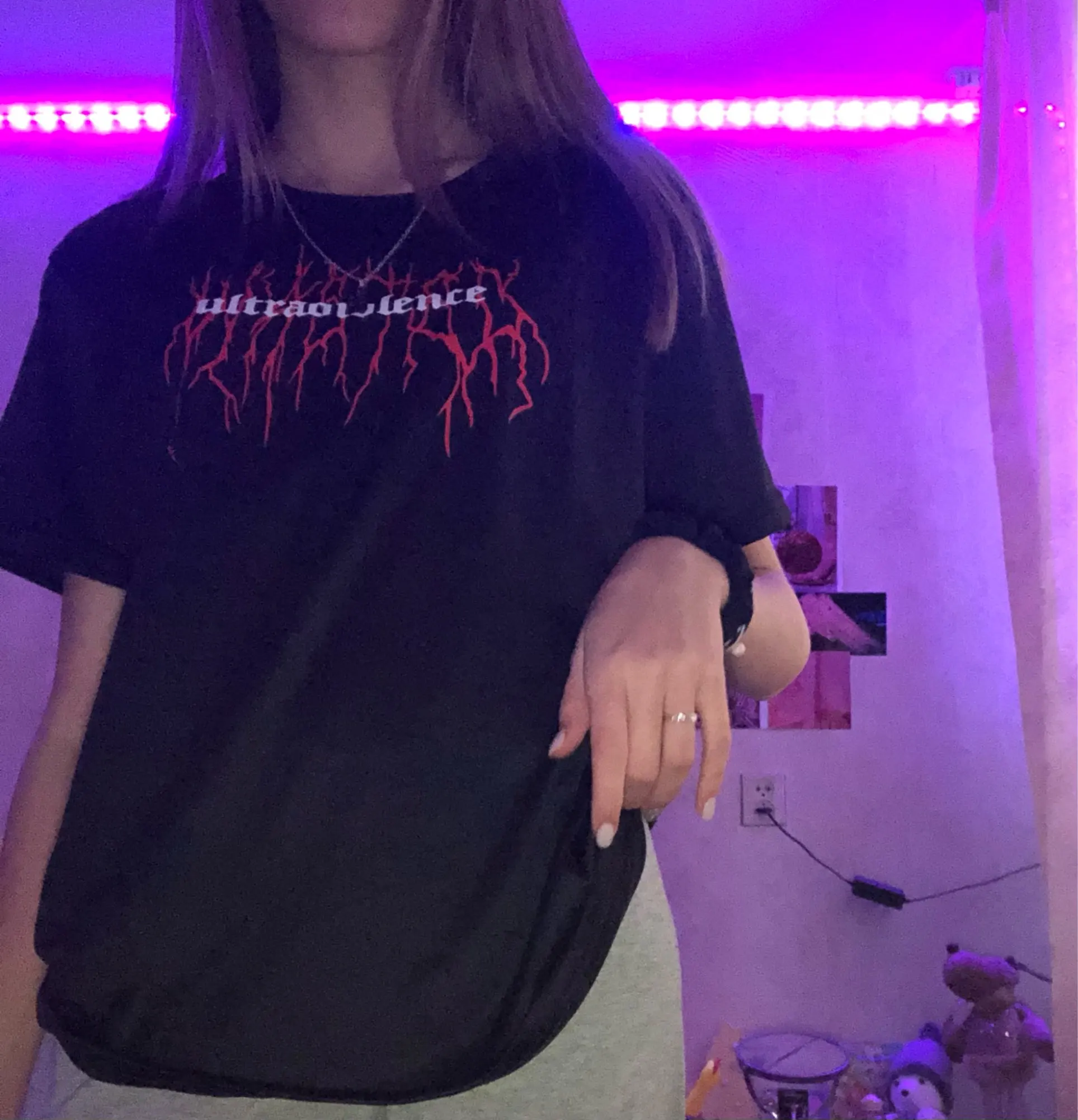 Качественный принт, хороший цвет. Только вот качество — галимая синтетика. Это конечно ничего, носить можно, но за счет этого просвечивает. За это убавляю две звезды. Кстати, я знал, что вещи на алике в основном кпц маломерят, только не думал, что настолько: я заказал футболку на два размера больше, надеясь на хоть какой-то малейший оверсайз, но пришла футболка подходящая ну прям только-только, так что, дорогие, если хотите оверсайз, заказывайте не на два, а на все четыре размера больше.