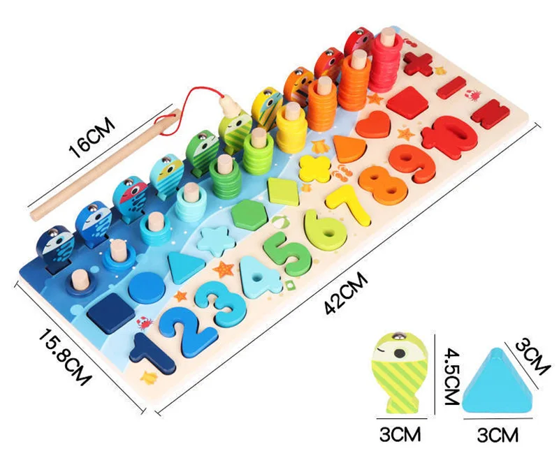 Деревянные игрушки Монтессори в форме цифр, подходящие строительные блоки, занятая доска, рыбалка, развивающие игрушки для детей, детская математическая игрушка