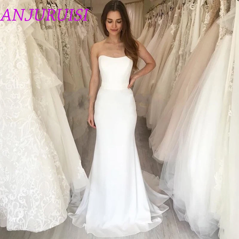 Женское шифоновое свадебное платье без бретелек ANJURUISI, простое платье невесты без рукавов с открытой спиной, Длинные свадебные халаты