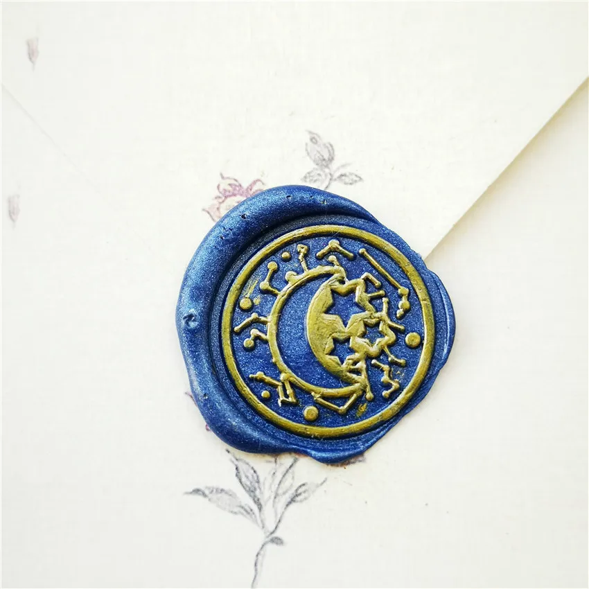 Восковой штамп с Луной, звездами, звездным небом, головка штемпеля ...