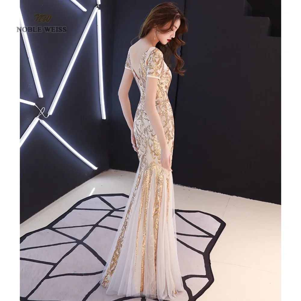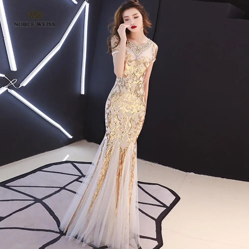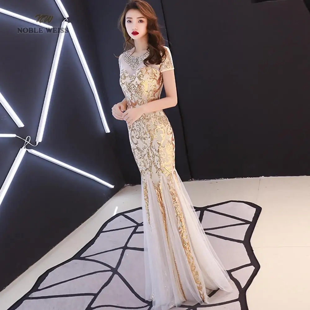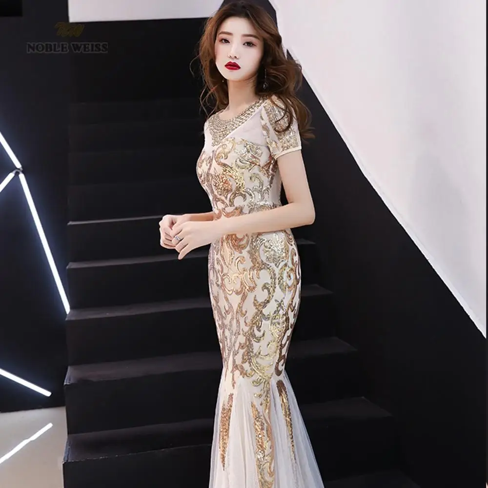 Платья для выпускного вечера, сексуальное платье в пол с круглым вырезом и блестками, платье для выпускного Расшитое Бисером, платье для выпускного вечера