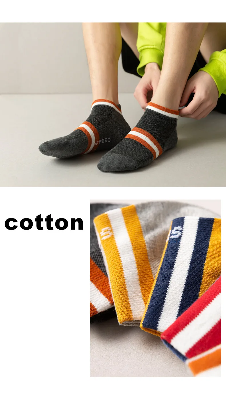 Материал: хлопокСостав основной ткани: 70 (%)Категория товара: хлопковые носкиСтиль: Повседневный, модный, спортивныйФункция: воздухопроницаемость, поглощение пота, дезодорированиеПодходящий Сезон: летоУзор: в полоскуТолщина: тонкаяПодходящий Пол: Для МужчинЦвет: как на фотографииРазмер: европейский размер 38-43 Посылка включает в себя: 5 пар носков