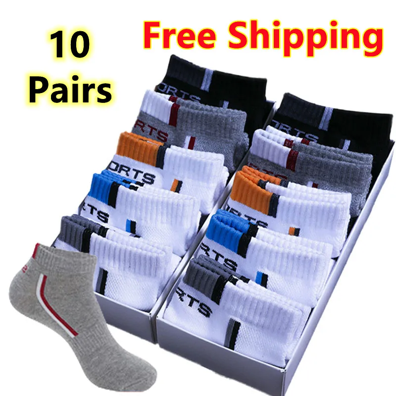 Носки мужские короткие хлопковые, впитывающие пот, повседневные сетчатые, спортивные, большие размеры 38-46, 10 парупаковка