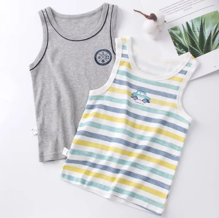 Детский летний жилет, футболка без рукавов, летняя детская верхняя одежда, топы, хлопковые майки, однотонные футболки для малышей, От 2 до 10 лет