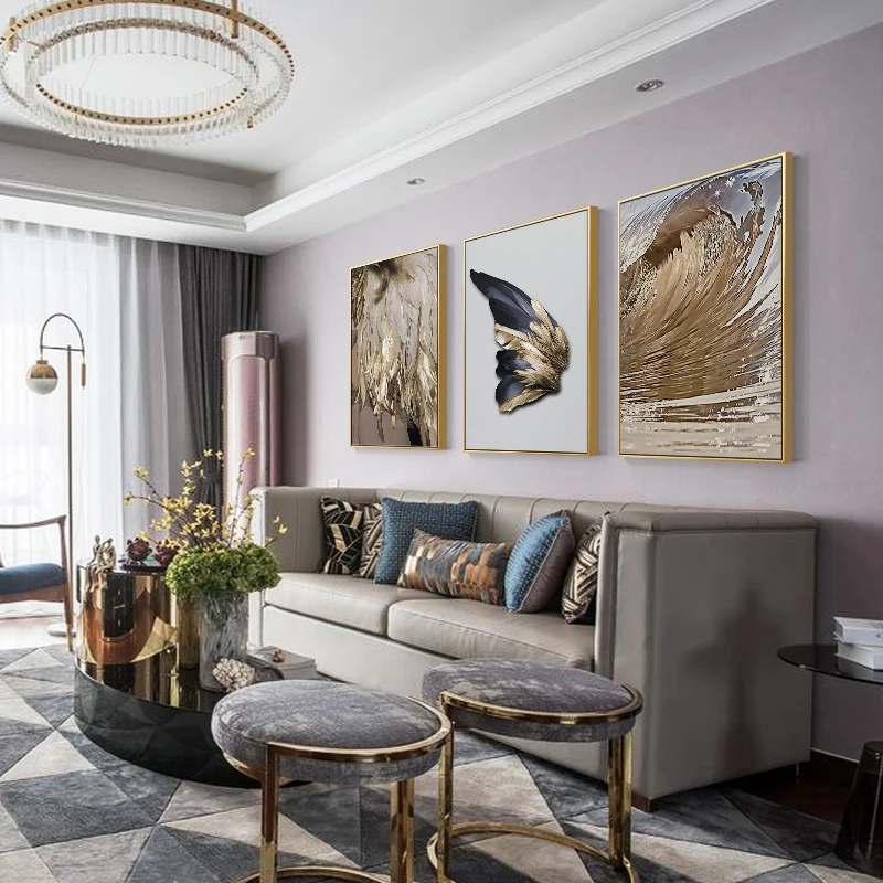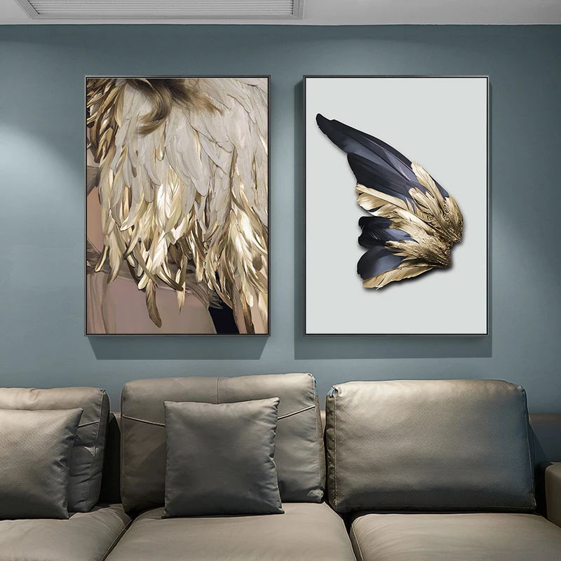 Скандинавский стиль, золотые крылья, перья, холст, живопись на стен...