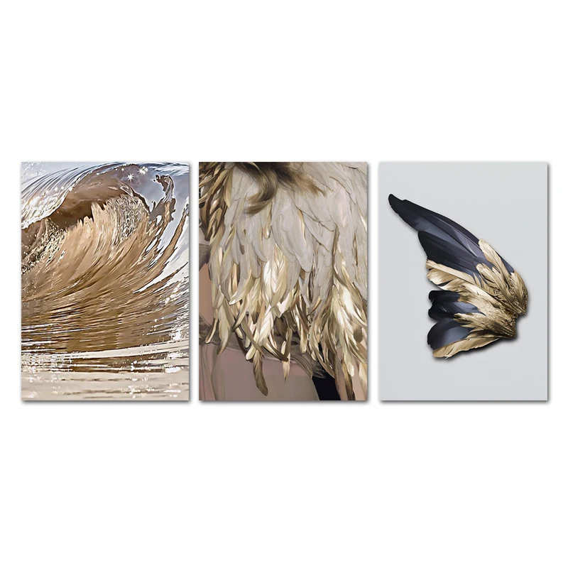 Золотое крыло, перо, картина маслом на стену, постеры в скандинавск...