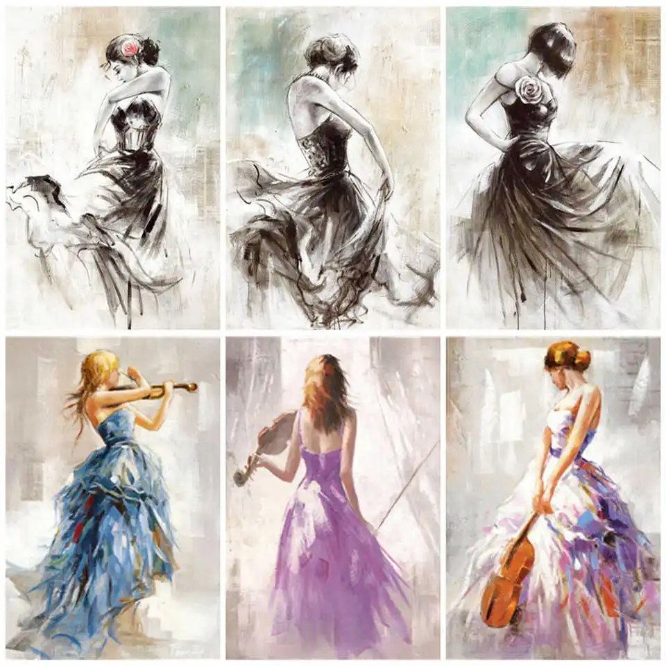 Раскраска по номерам для взрослых AZQSD, портрет сделай сам, нерамка, настенное искусство, акриловая краска, раскраска маслом по номерам, балетка, девочка, уникальный подарок