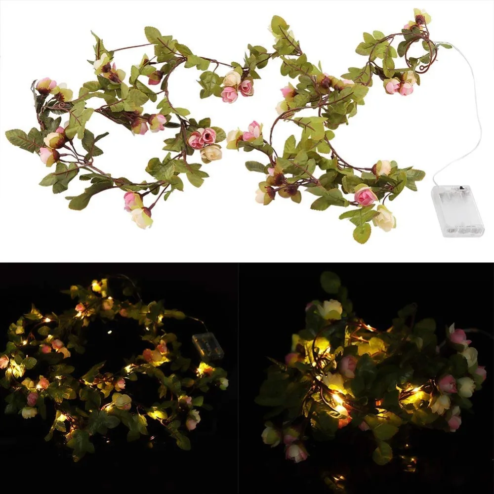Рождественская светодиодная гирлянда с розовыми цветами, 2 м, 5 м, 10 м, Сказочная гирлянда на батарейках для украшения свадьбы, сада Вечерние