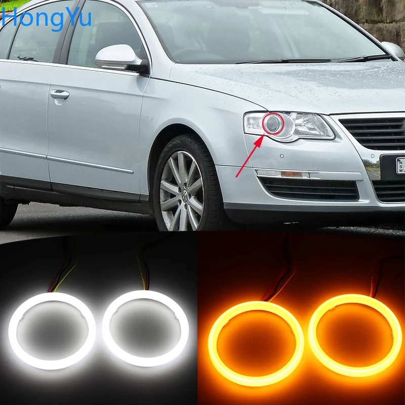 Светодиодный поворотник с хлопковым переключением, белый Янтарный ангельский глаз, кольца с ореолом, DRL светильник ры указателя поворота для Volkswagen VW Passat B6 Magotan 2006-2010