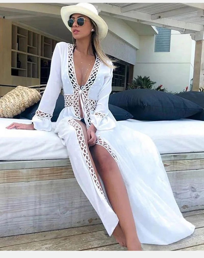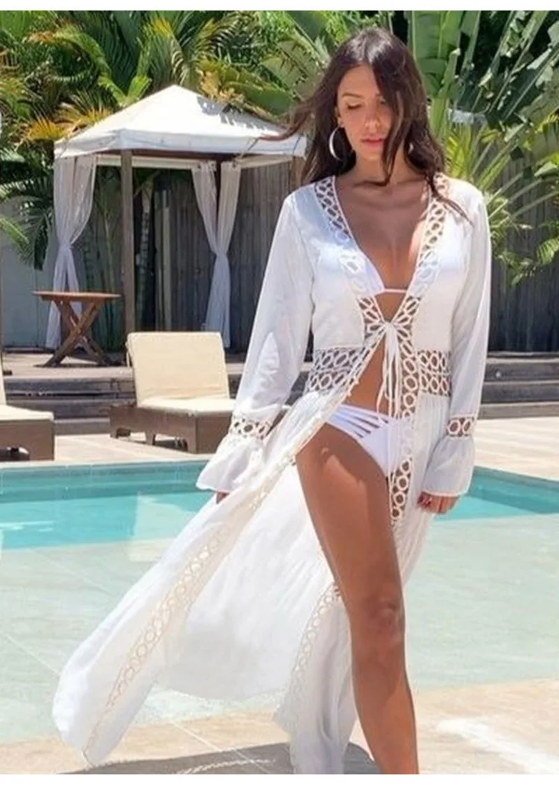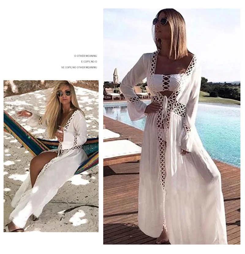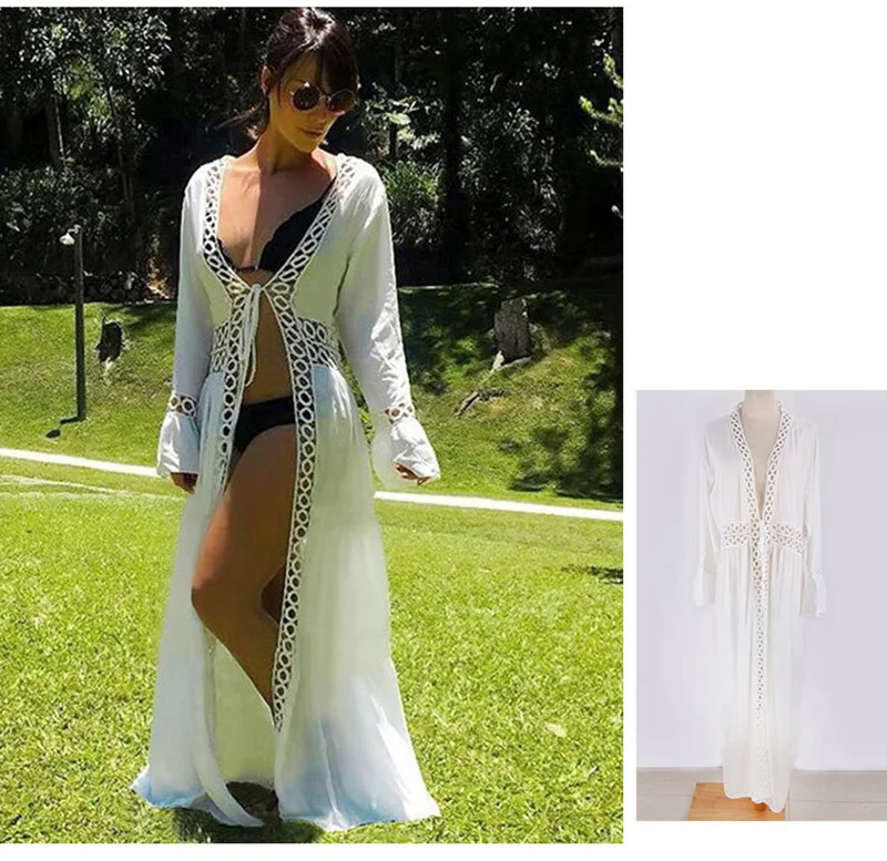 Пляжная накидка в стиле бохо Fitshinling, летняя накидка для отдыха, длинный кардиган белого цвета с длинным рукавом, 2020, Стройное сексуальное бикини