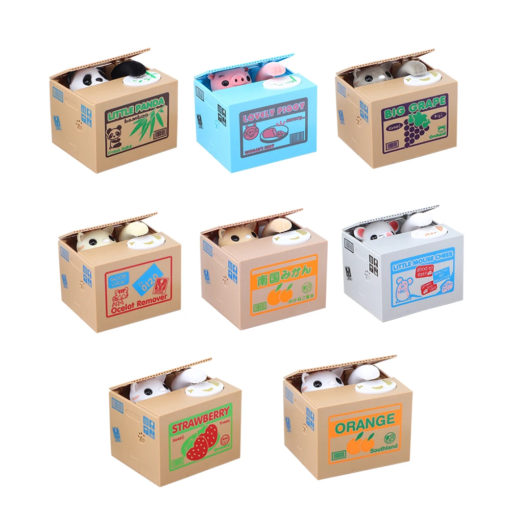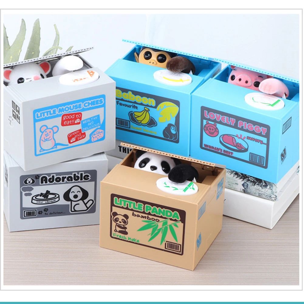 Электрическая коробка для денег в виде панды, автоматическая копилка, монета, милая детская игрушка, забавное животное, обезьяна, кошка, коробка для экономии денег, чехол