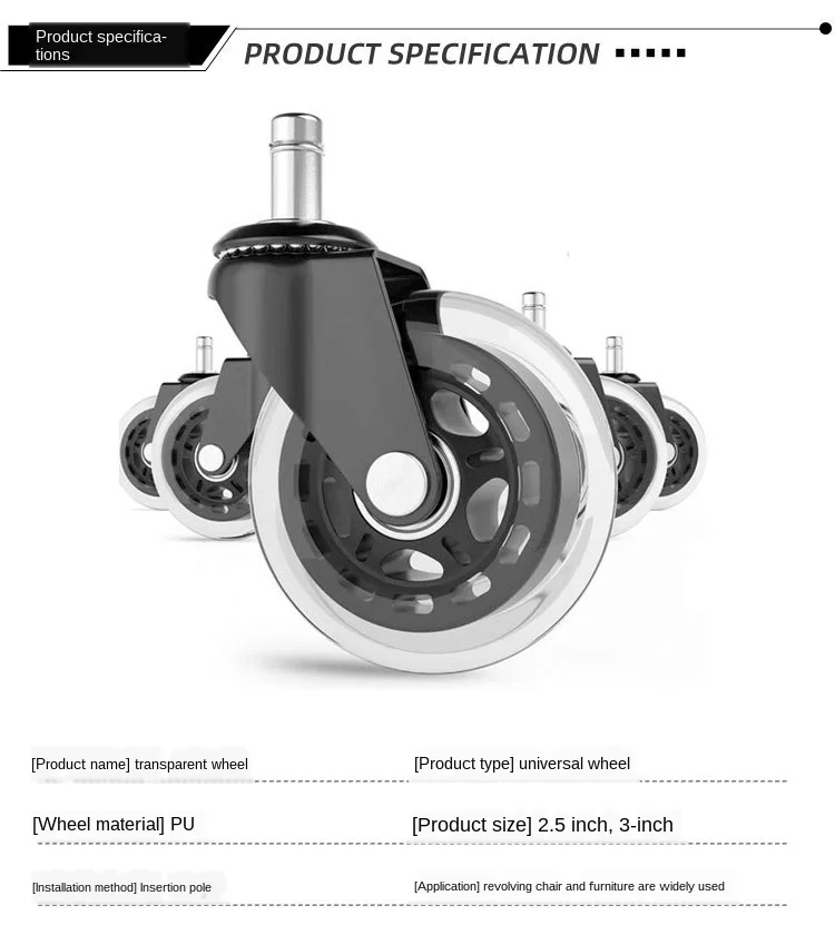 2,53-дюймовый ролик для офисного стула, универсальные бесшумные кол...
