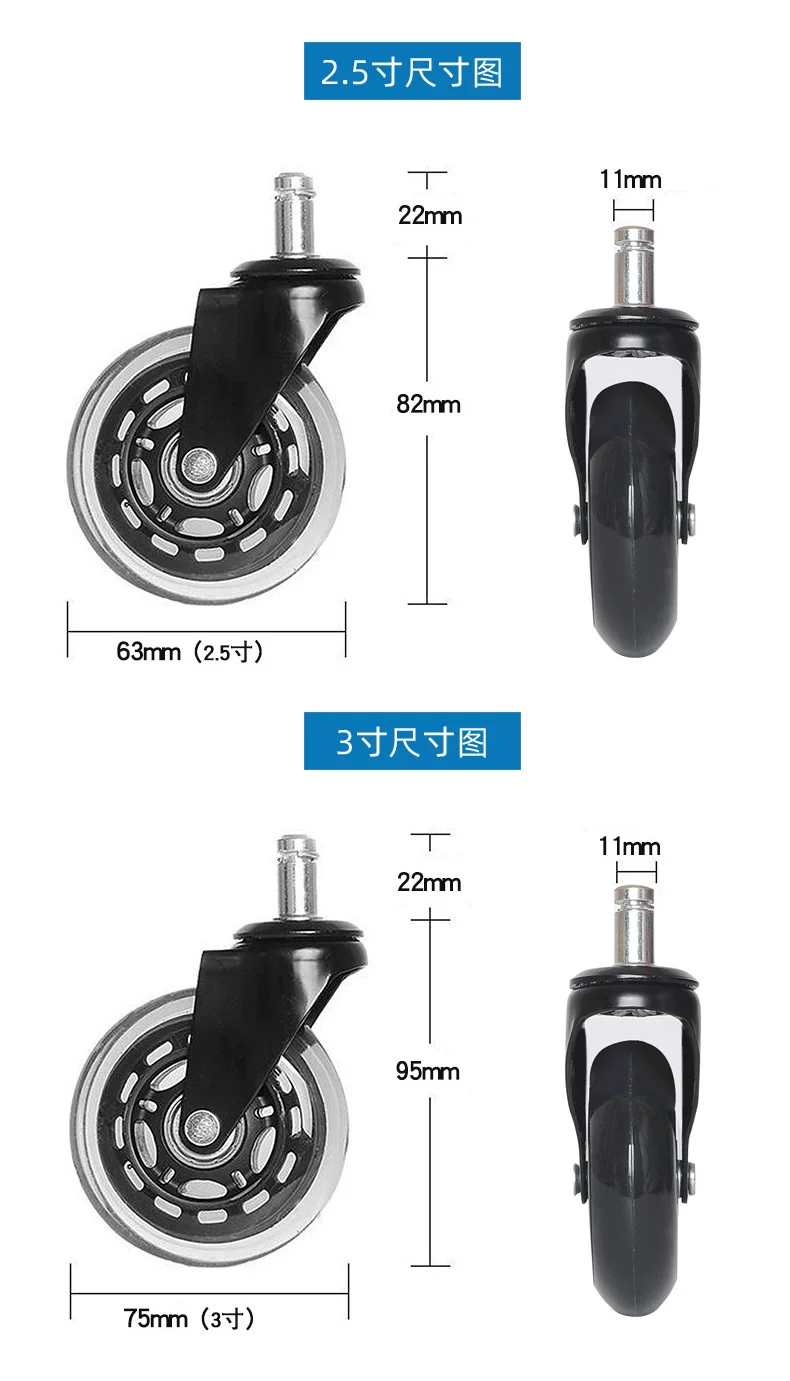 5 шт., универсальные колесики для офисных стульев, 2,5 дюйма, 3 дюйма