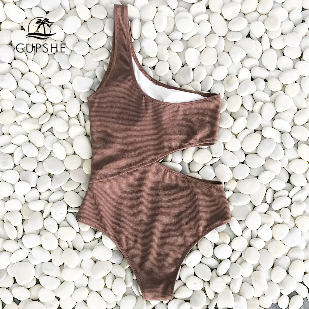 CUPSHE цельный купальник на одно плечо с вырезами, женский пляжный однотонный коричневый купальный костюм, купальный костюм, новинка 2022, однотонные купальники для девочек