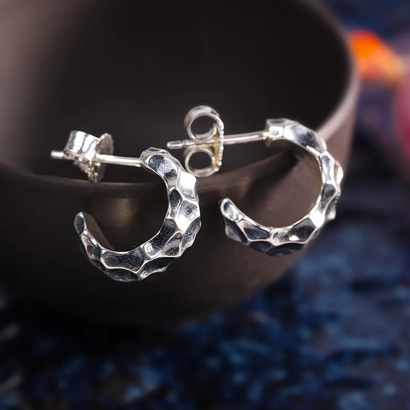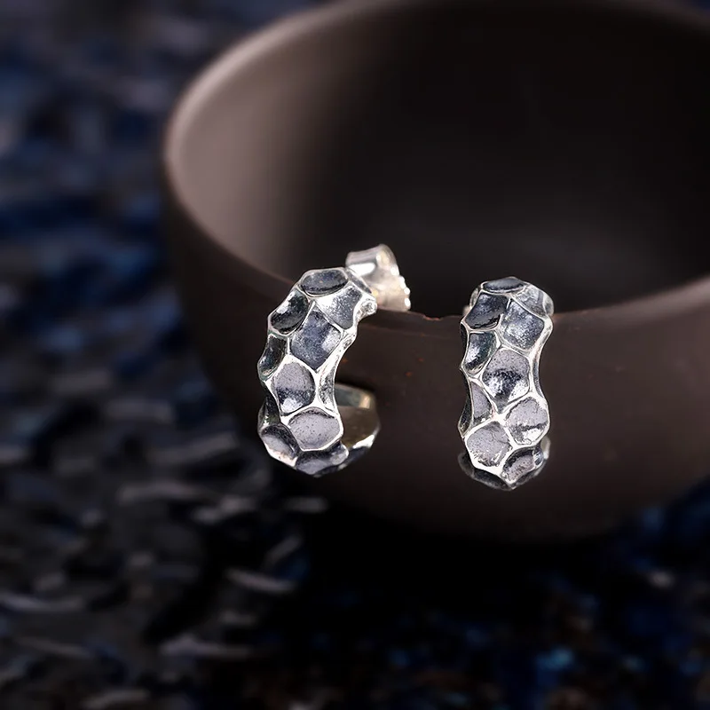 Серьги-гвоздики унисекс с неровной ухабистой поверхностью для мужчин и женщин, нейтральные тайские серебряные серьги, однотонные 925 серебряные серьги