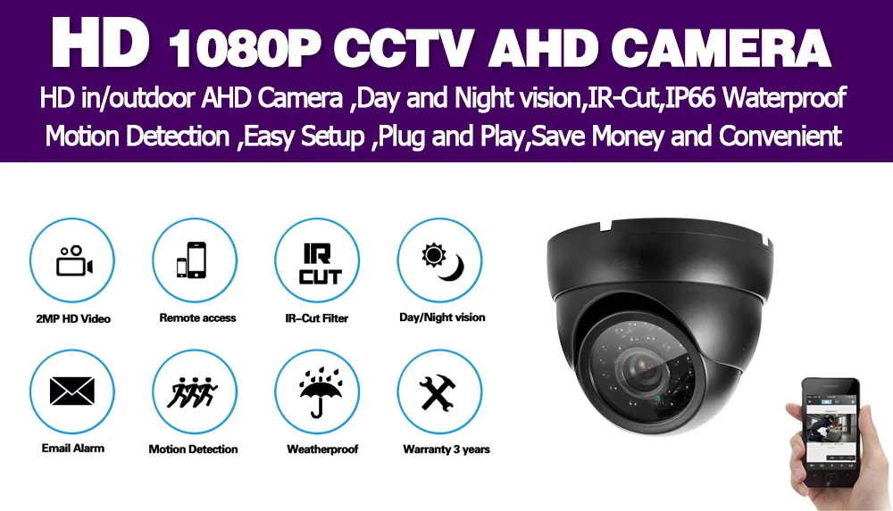 HD 1080P AHD CCTV Черная Камера CCD ИК фильтр микрокристаллический 24 ИК светодиодов 1MP 2MP AHD камера 720P 1080P купольная камера безопасности