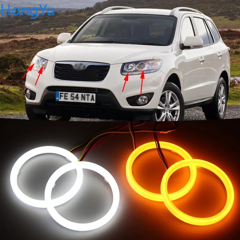 Хлопсветодиодный светодиодная кольцесветильник лампа Angel Eye, кольцевая лампа DRL белого цвета для Hyundai Santa Fe santafe 2007 2008 2009 2010 2011 2012
