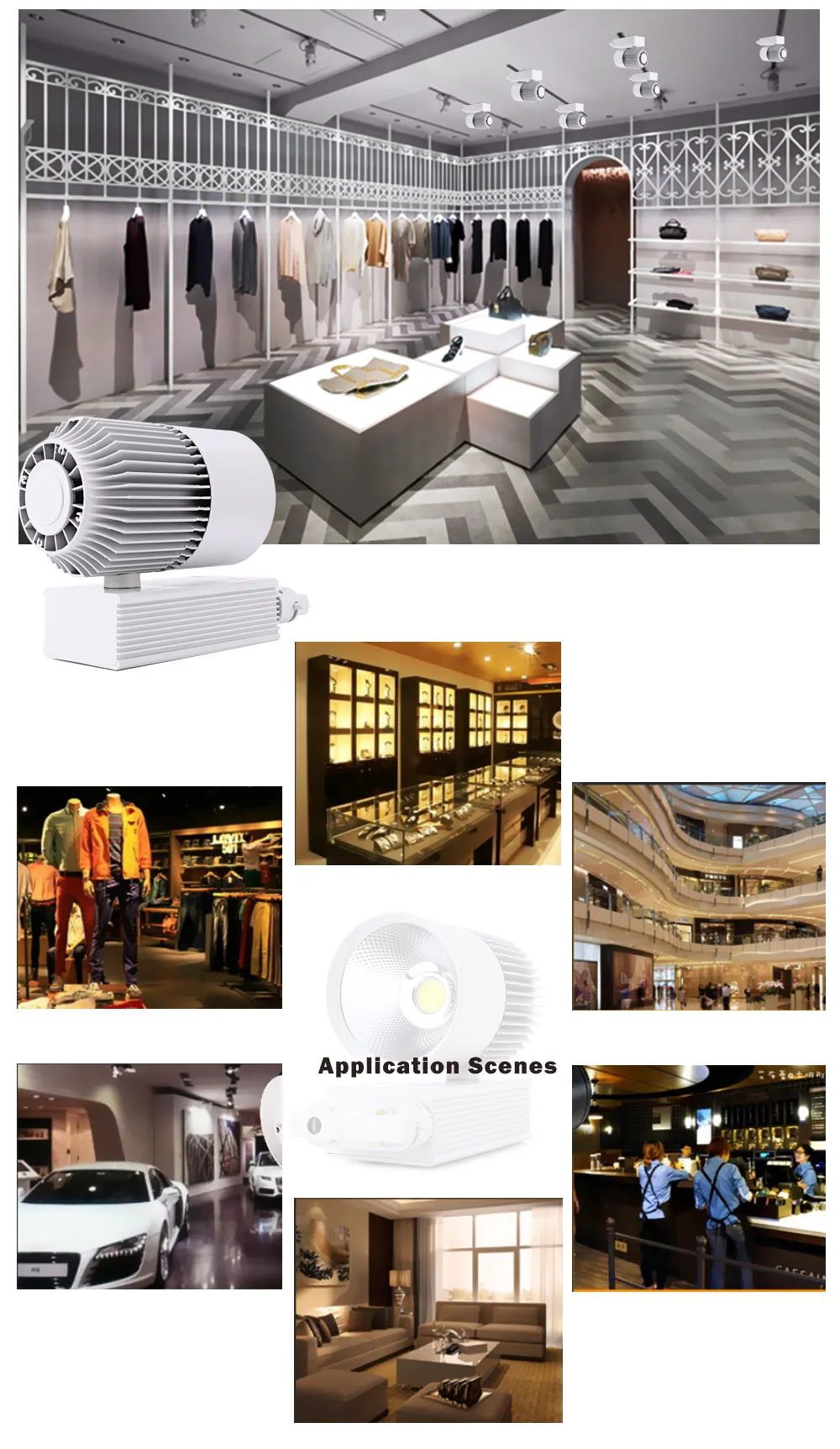 Светодиодный Трековый светильник 30 Вт, рельсовый Точечный светильник с монолитным блоком светодиодов, рельсовый светильник для обуви, магазина, магазина, торгового зала, точечный светильник, выставочный светильник