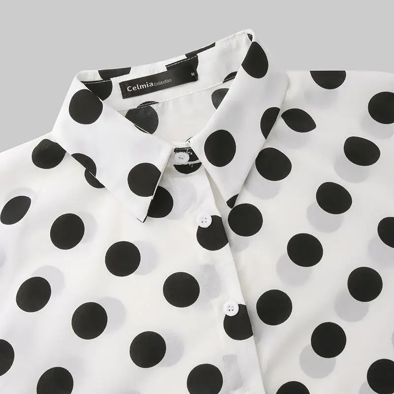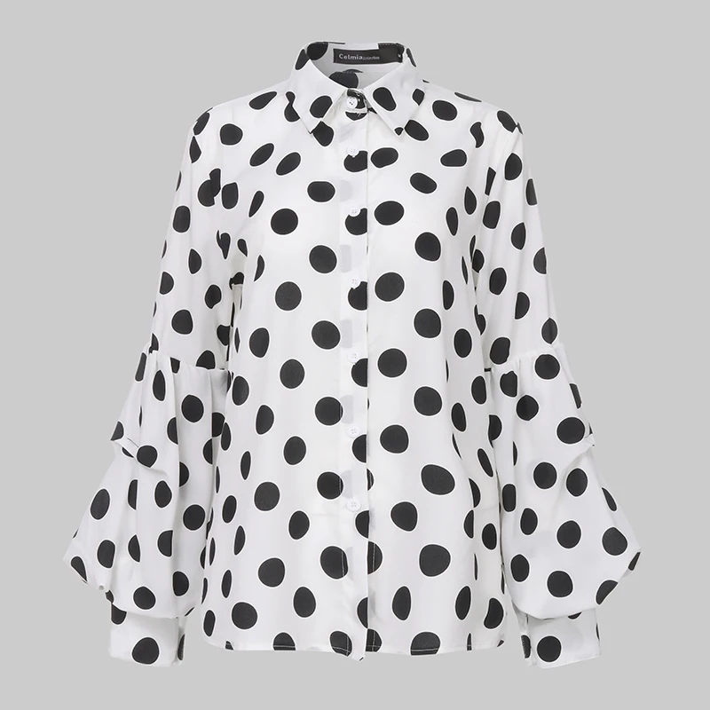 Женские блузки в горошек Celmia, повседневные однотонные вечерние рубашки в стиле ретро с рукавами-фонариками и пуговицами, блузки размера плюс 5XL и 7 в Корейском стиле