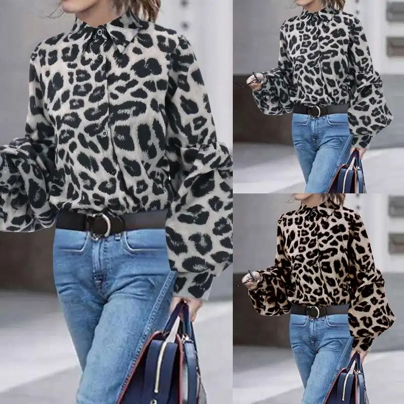 Рубашка женская с отложным воротником и рукавами-фонариками, 2021
