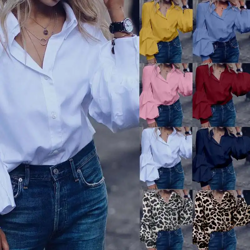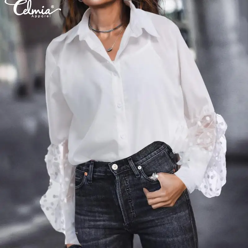 2021 модные рубашки с рукавами-фонариками Celmia, Женская Повседнев...