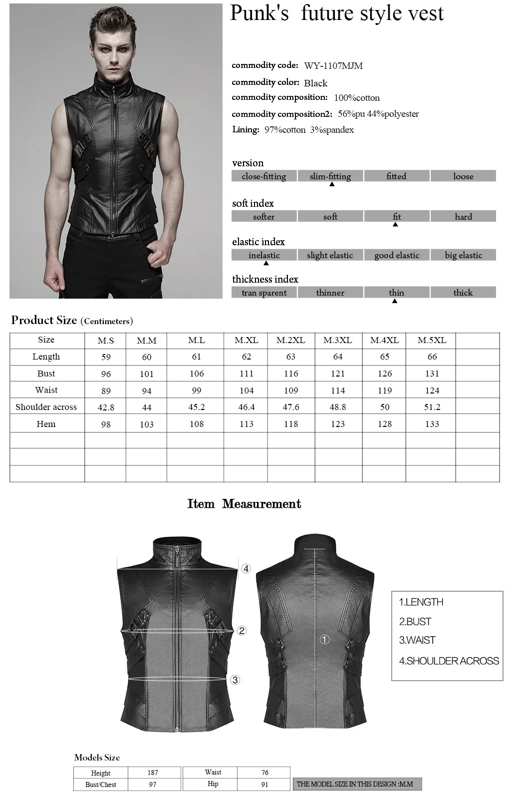Мужской резиновый жилет, панк-стиль Three-di, с узором, WY-1107MJM