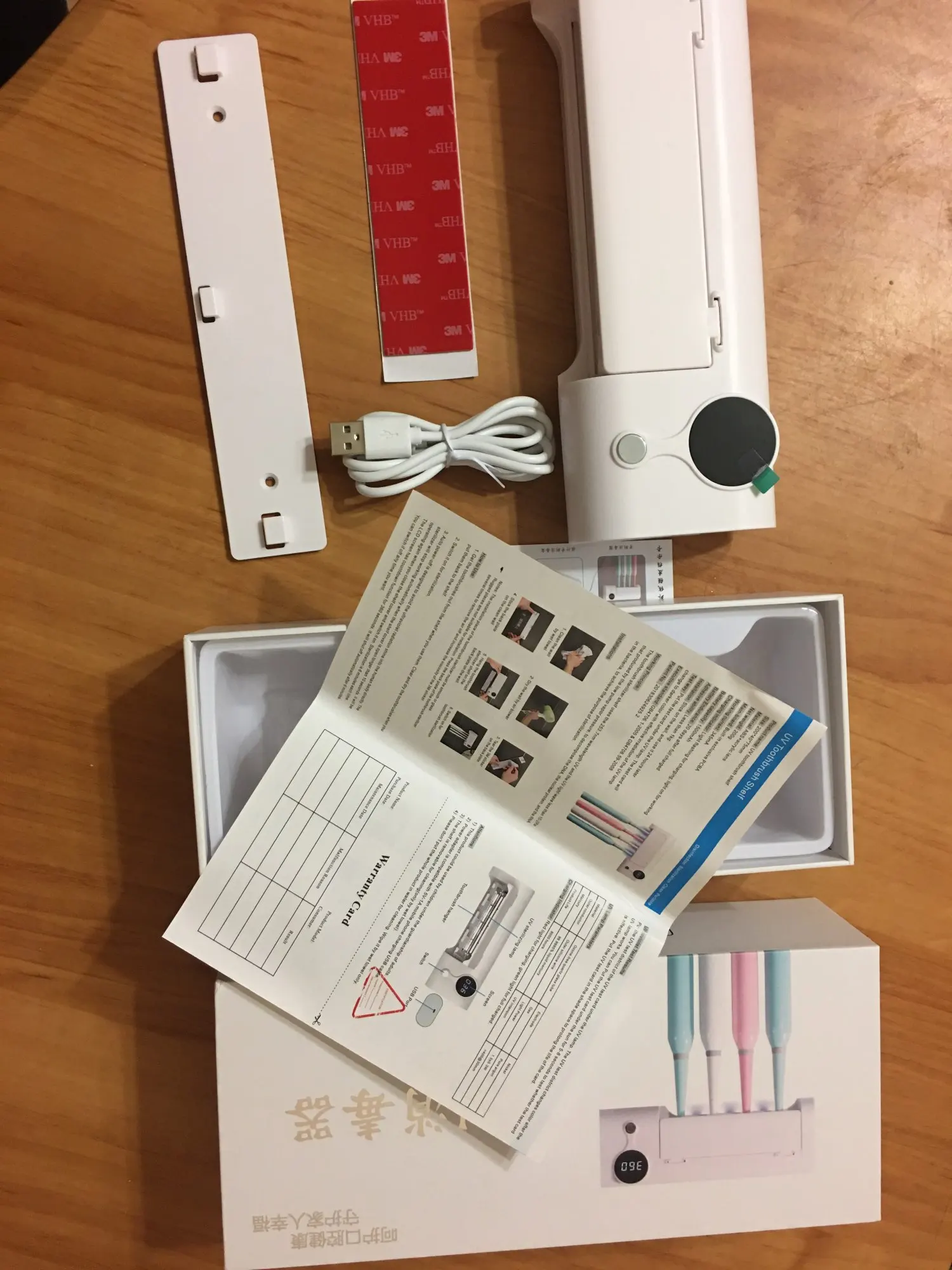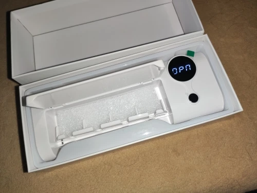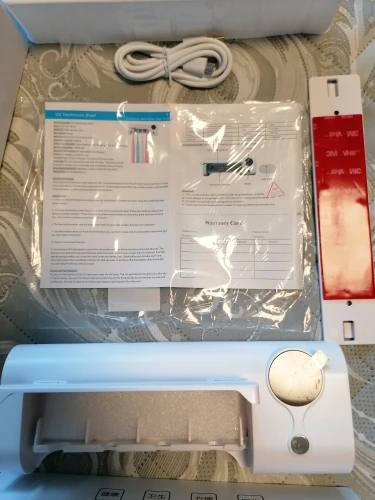 Доставка около трёх недель, с отслеживанием. Выглядит круто, начиная с коробки, заканчивая самим прибором. В комплекте к стерилизатору был USB провод, для зарядки, не длинный, около 1 метра. Также прилагается инструкция. Прибор пришел заряженный, не знаю полностью ли, заряда хватило примерно на 10 дней. К стене на липучке крепится подставка, на которую помещается стерилизатор. После нажатия кнопки, загорается голубой свет и таймер отсчитывает 360 секунд, за которые происходит стерилизация УФ светом.( как обещает производитель) В общем, мне все понравилось, надеюсь прослужит долго.