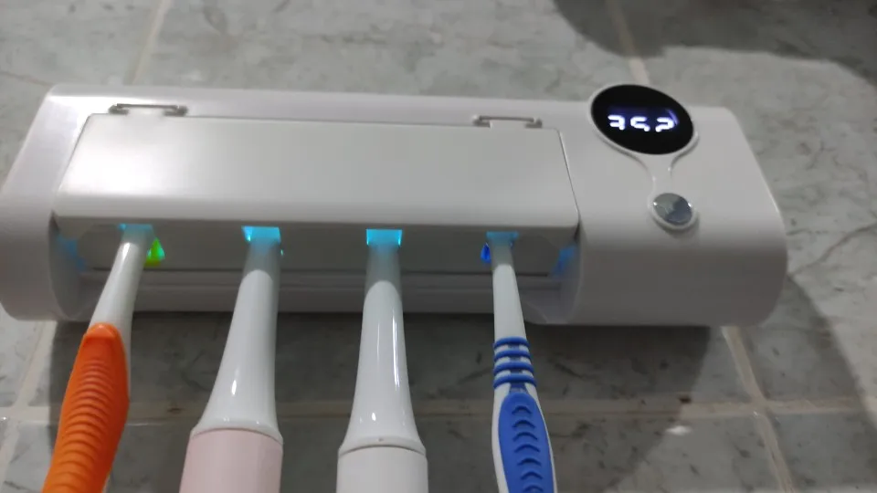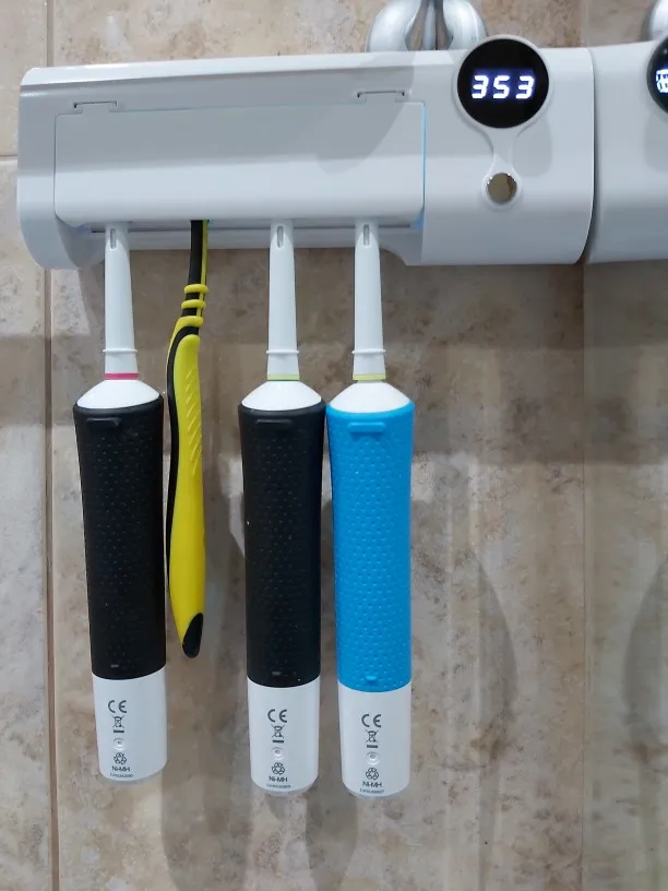 хорошая держалка для щеток. да ещё с уф лампой. Шло долго из-за ковида, но продавец с подробностями объяснял, что с посылкой и почему так долго. В комплекте все, что надо. даже запасная полоска скотча, провод миниюсб (для безопасности заряжать лучше вне ванной комнаты!!!)