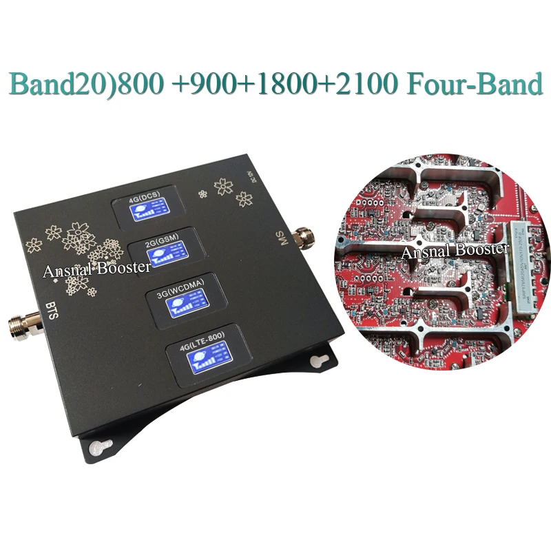 LTE Band20)800/900/1800/2100 четырехдиапазонный усилитель сигнала + источник питания