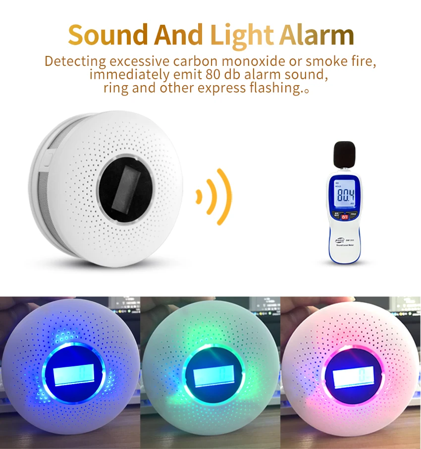 Датчик угарного газа в комбинации с детектором дыма, высокий децибе...