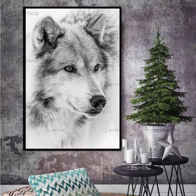 Черно-белый плакат в современном минималистском стиле, крутой волк, животное, Картина на холсте, принты, настенные картины для декора гостиной