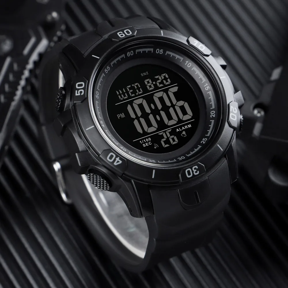 Часы наручные SKMEI мужские цифровые водонепроницаемые, спортивные в стиле милитари, с будильником, черные, 1475