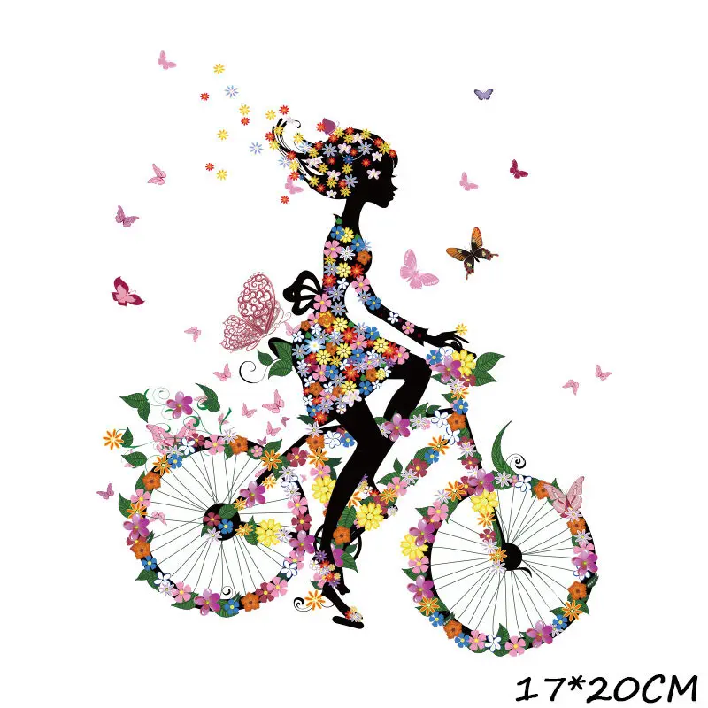 Термоклейкие нашивки на велосипед, набор для детской одежды, самодельная футболка, аппликация, Термотрансферная виниловая симпатичная девушка, наклейки, термопрессор