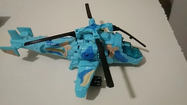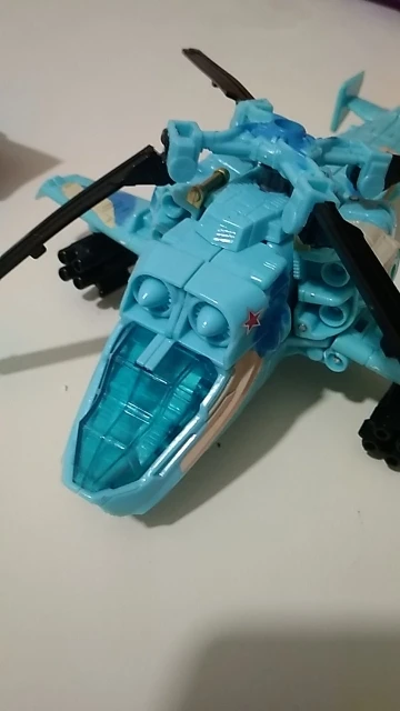 Товар пришел в срок,игрушка красивая, материал прочный и приятно тяжелый. Но! 1)Очень туго трансформируется ( пришлось смазывать машинным маслом) . 2) Будьте внимательны, игрушка упакована только в пакет и ее целостность зависит от нежности почты РФ . Вашем случае сломан один из фиксаторов лопастей вертолета.
