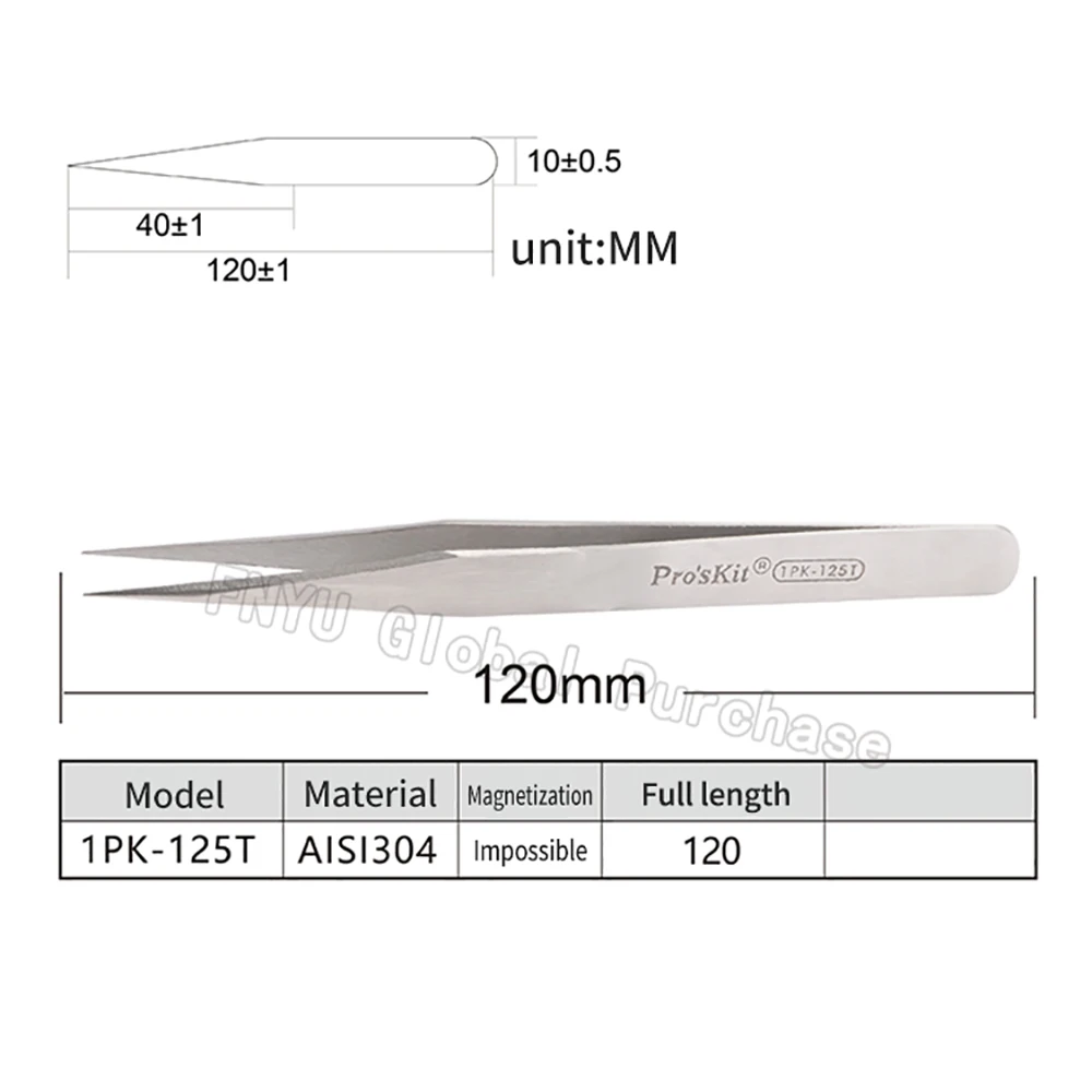 1PK-125T Pro'skit электрик антимагнитный Пинцет Seiko зажим из нержавеющей стали тонкий наконечник зажим DIY Электронный сервис ручной инструмент
