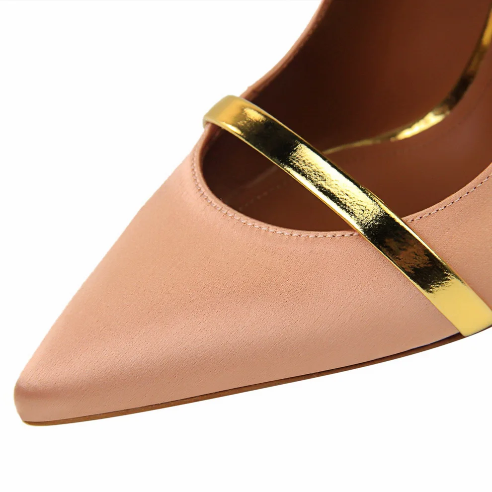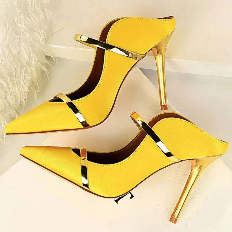 Шлепанцы женские на высоком каблуке 10 см, атласные, без застежки