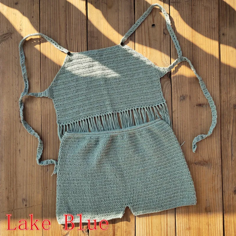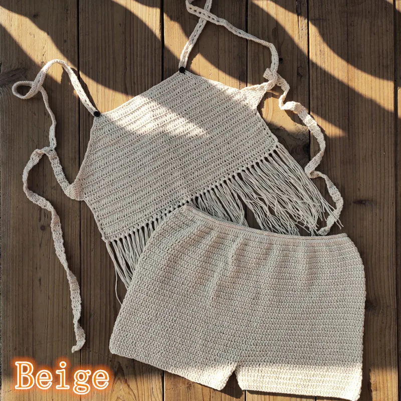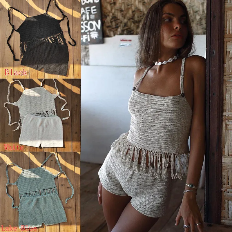Женский комплект бикини ручной работы, вязаный крючком, пляжный купальник, летний брюки бохо
