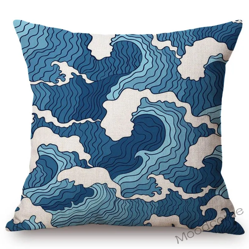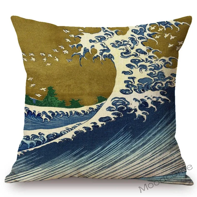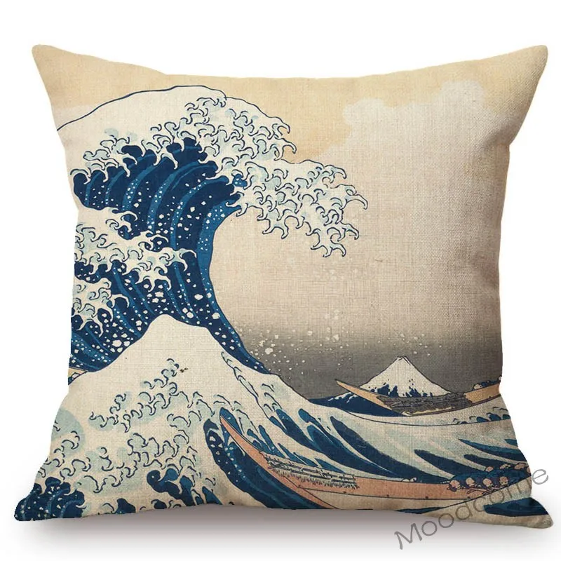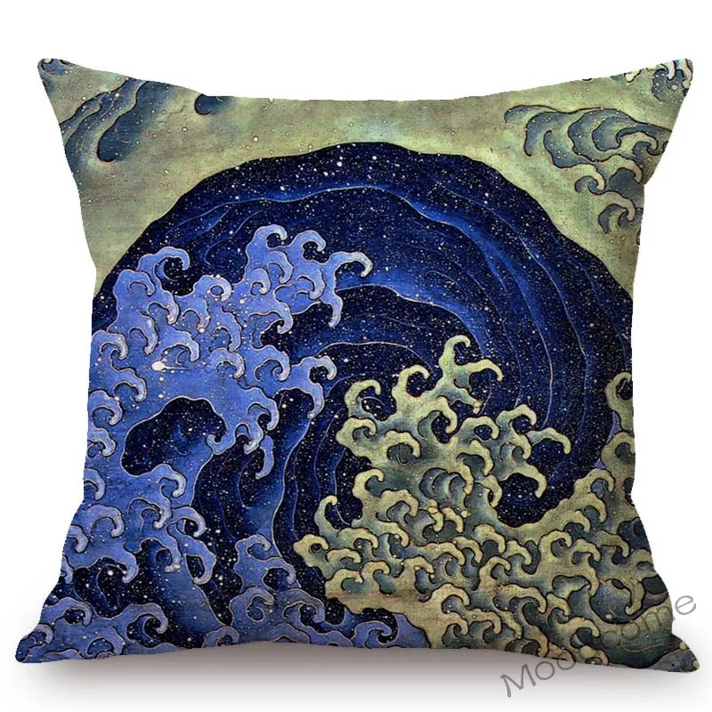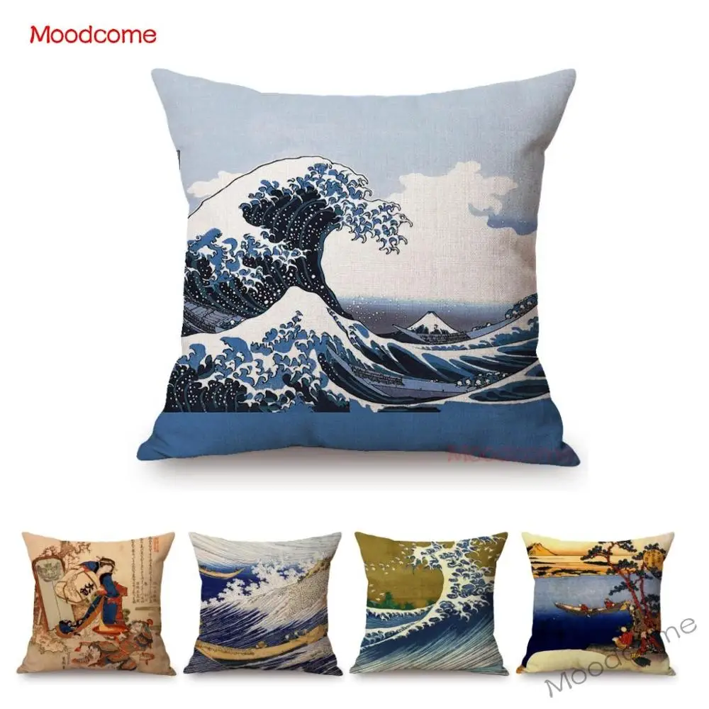 Наволочка для диванной подушки из хлопка и льна, с изображением большой волны в азиатском искусстве, художественное украшение для японского художественного искусства