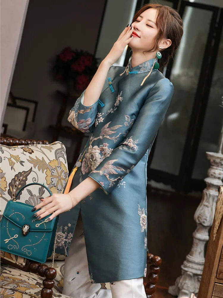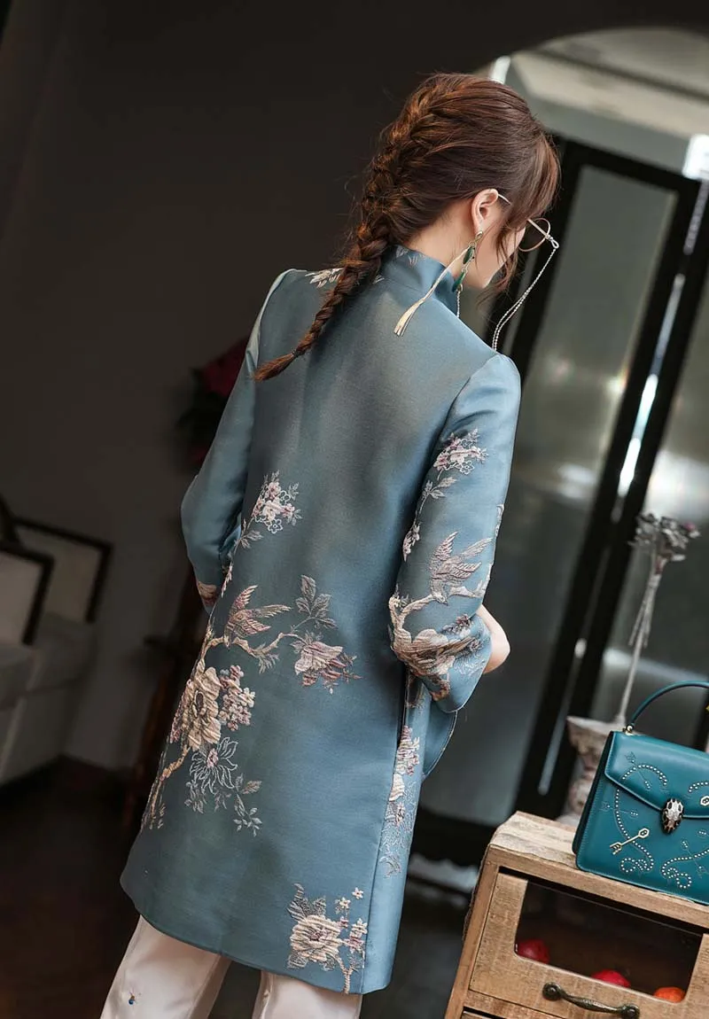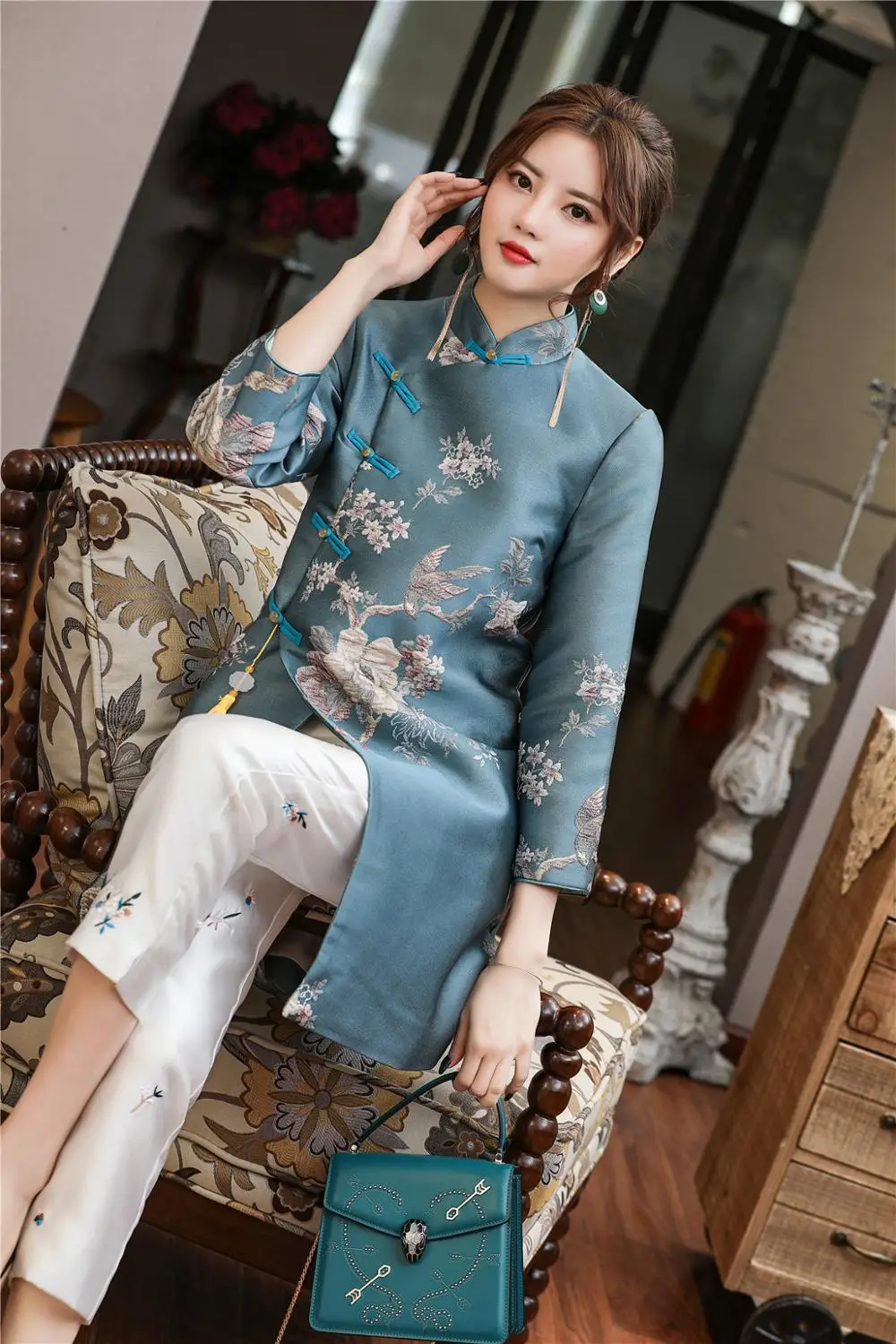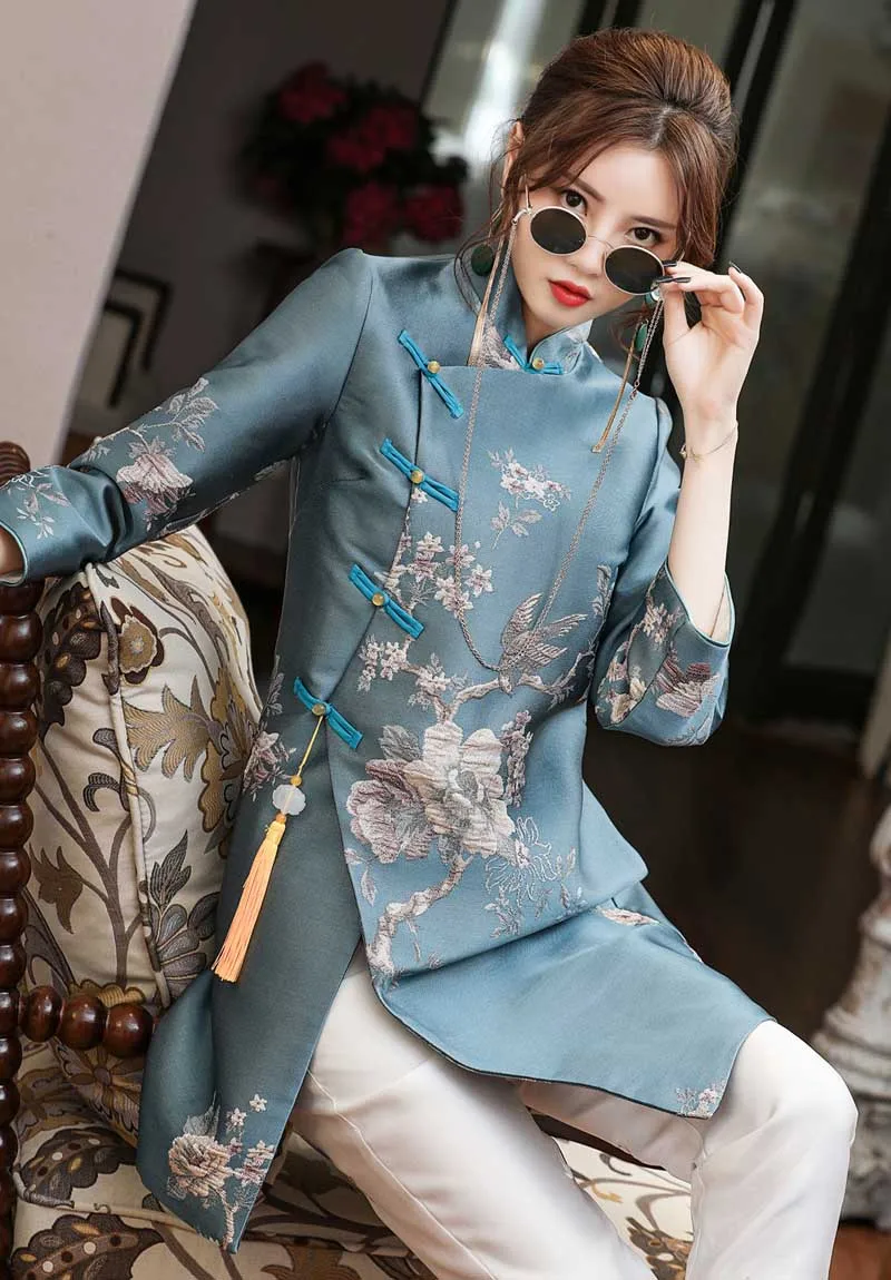 Жаккардовый топ в китайском стиле, маленькая Улучшенная одежда в стиле ретро, топ с длинными рукавами в китайском стиле, женское весеннее пальто, S-3XL