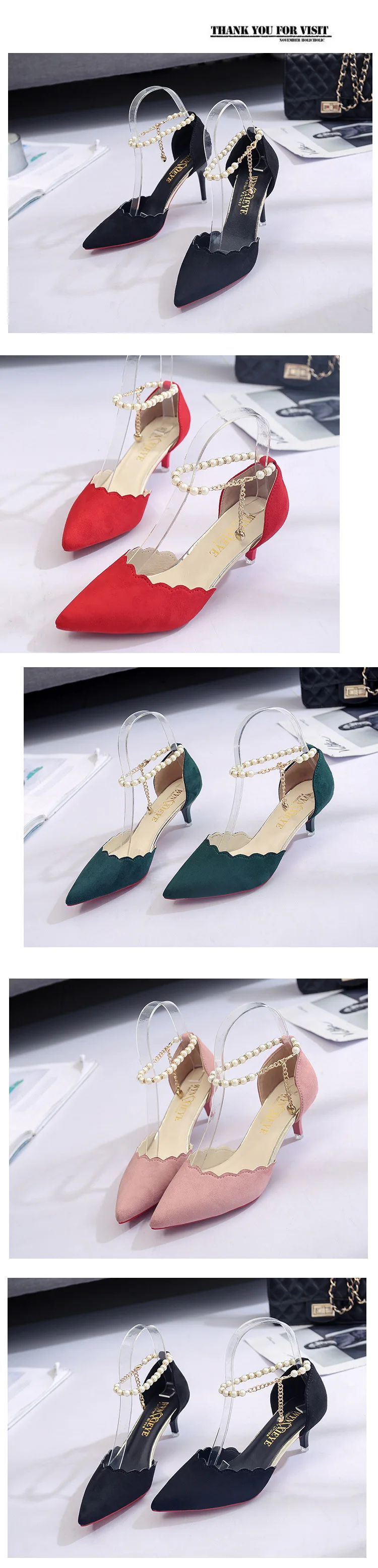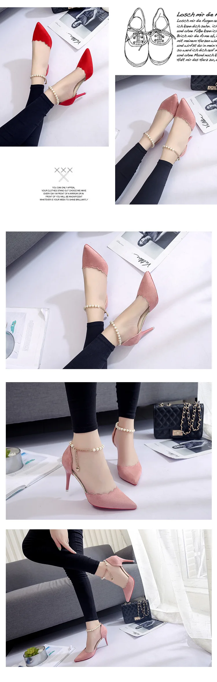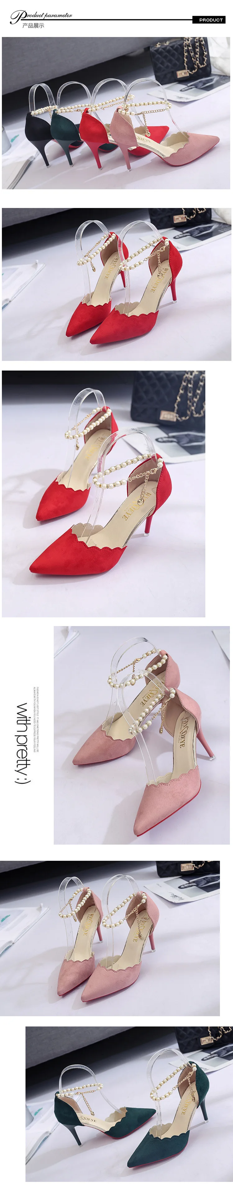 Новинка весны 2021, пикантные женские босоножки на шпильке, вечерние туфли из матовой кожи с острым носком и жемчужной цепочкой