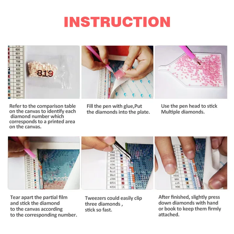 6. Для того, чтобы создать идеальную картину с бриллиантами, рисунки, размещенные в одном месте, каждый ряд символов не должны оставаться приклеенными алмазами.