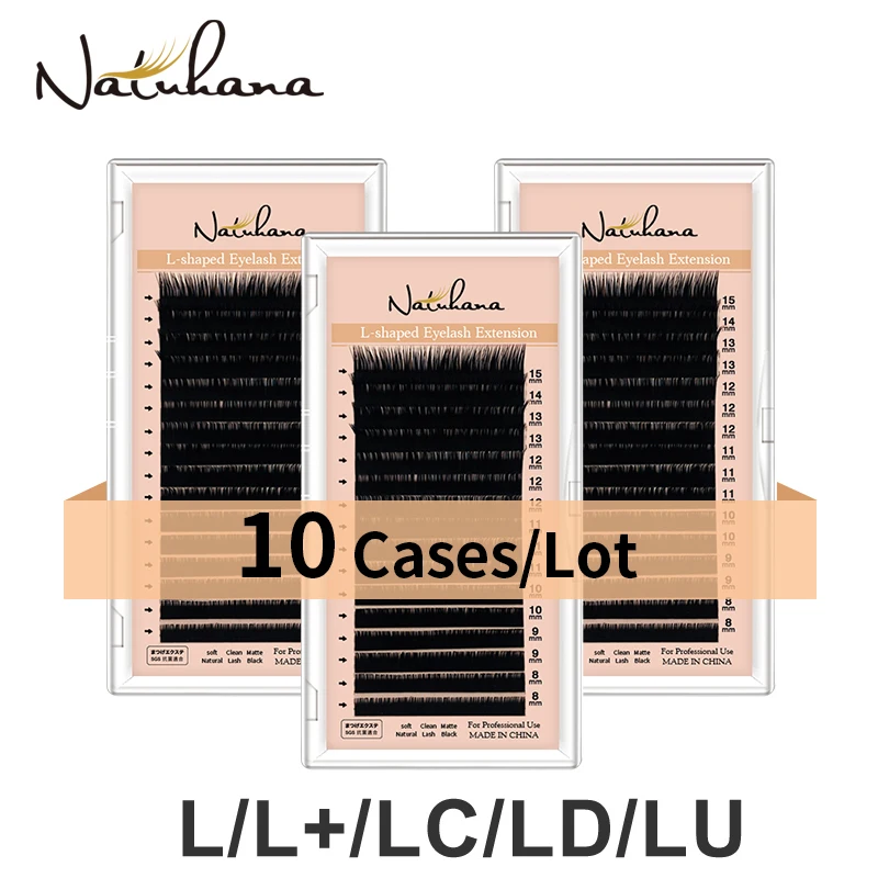 NATUHANA оптовая продажа 10 чехловпартия 8-15 смешанных LL +LCLDLU(M) завитые Индивидуальные ресницы l-образные ресницы норковые накладные ресницы для наращивания