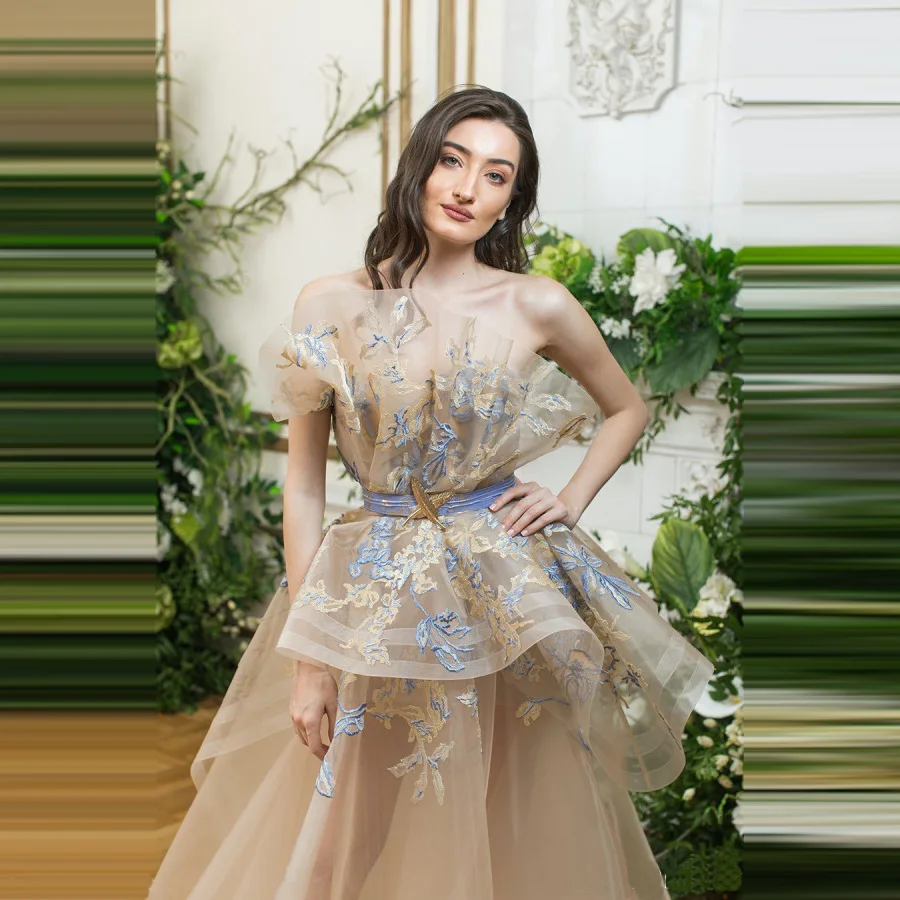 Элегантные женские вечерние платья а-силуэта вышитые оборки аппликации без бретелек торжественные вечерние платья для выпускного вечера для девушек